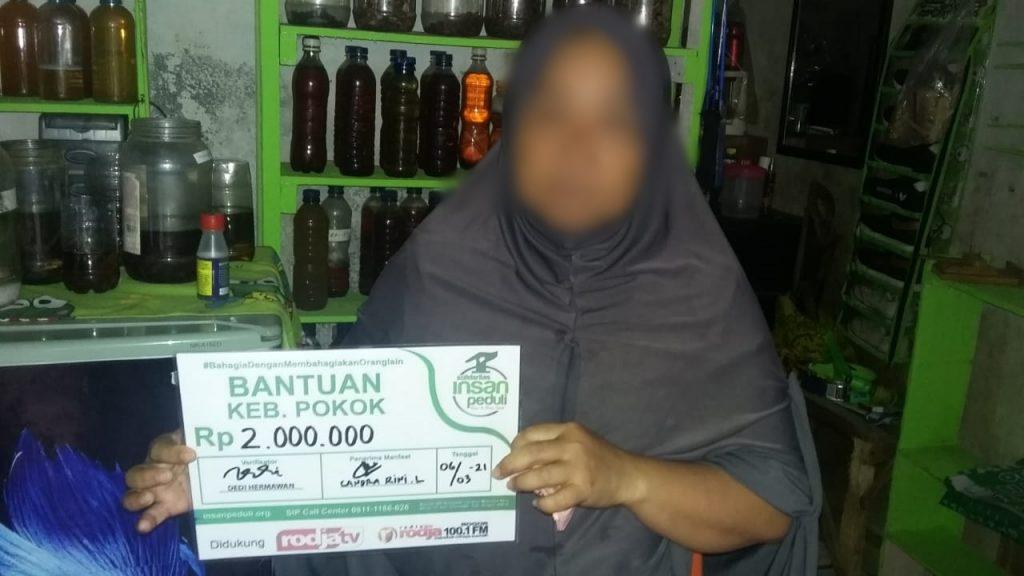 Kesulitan dalam memenuhi kebutuhan biaya hidup, dimana semenjak suaminya meninggal, beliau menjadi tulang punggung untuk 4 orang anaknya. Beliau meneruskan usaha suaminya, tapi qadarullah semenjak pandemi melanda, penjualan menurun drastis, dimana kadang hanya Rp 40 rb/hari nya.
