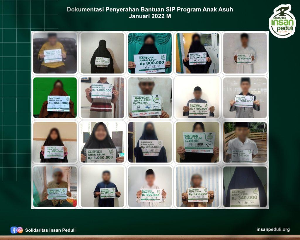 Laporan penyaluran santunan rutin anak asuh SIP bulan Januari 2022 M / Jumadil Akhir 1443 H