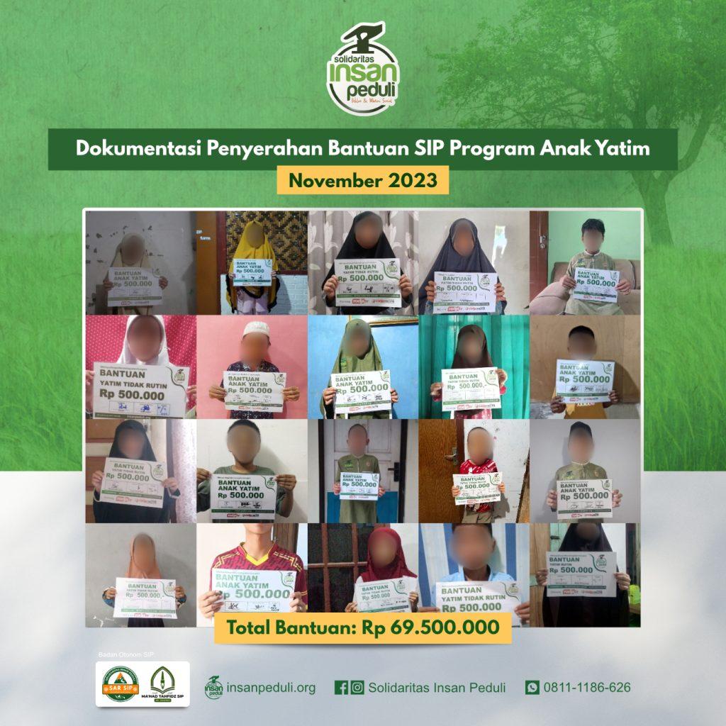 Total penyaluran diberikan kepada 136 anak yatim dengan total dana Program Santunan Yatim SIP bulan November 2023 M sebesar Rp 69.500.000.
