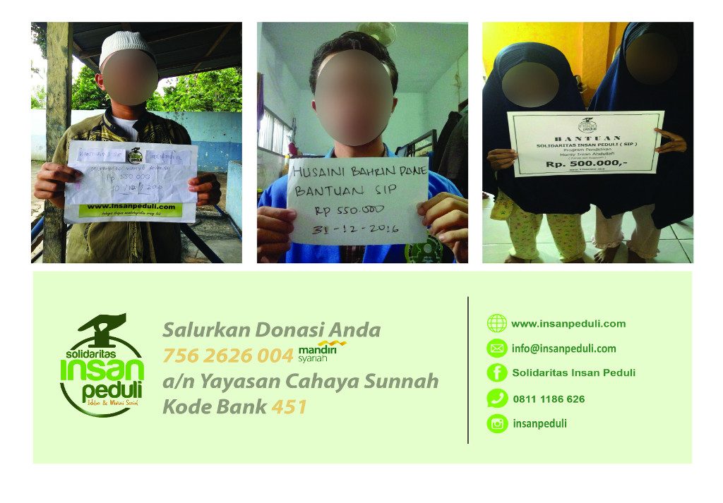 Kami ucapkan Jazakumullahu khairan wa baarakallahu fiikum kepada para muhsinin SIP. Semoga Allah ta’ala memberkahi hartanya.