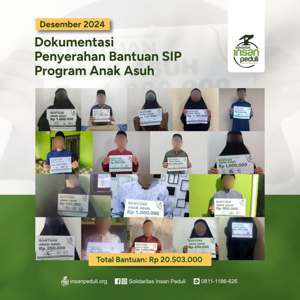 Laporan penyaluran santunan rutin anak asuh SIP bulan Desember 2024 M / Jumadil Akhir 1446 H