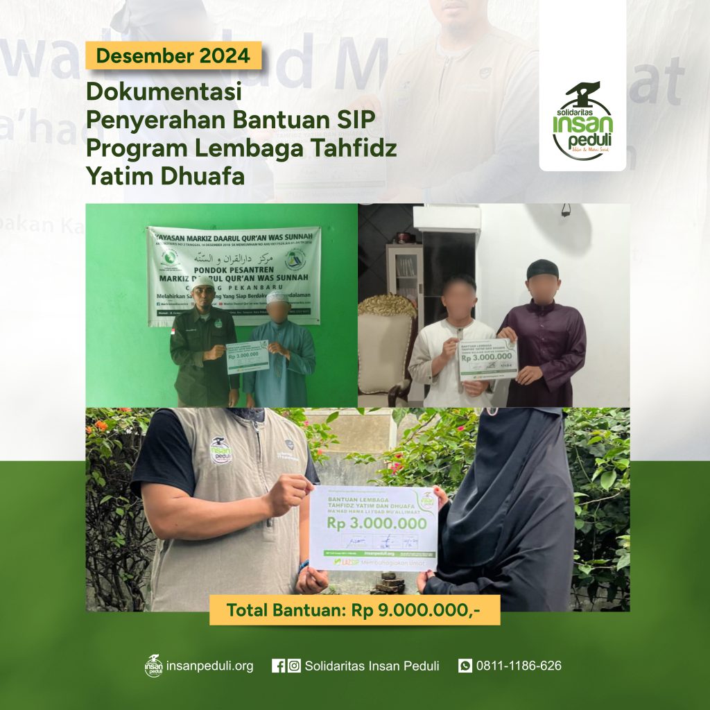 Berikut Laporan penyaluran santunan rutin Lembaga Tahfidz Yatim & Dhuafa SIP bulan Desember 2024M / Jumadil Akhir 1446H