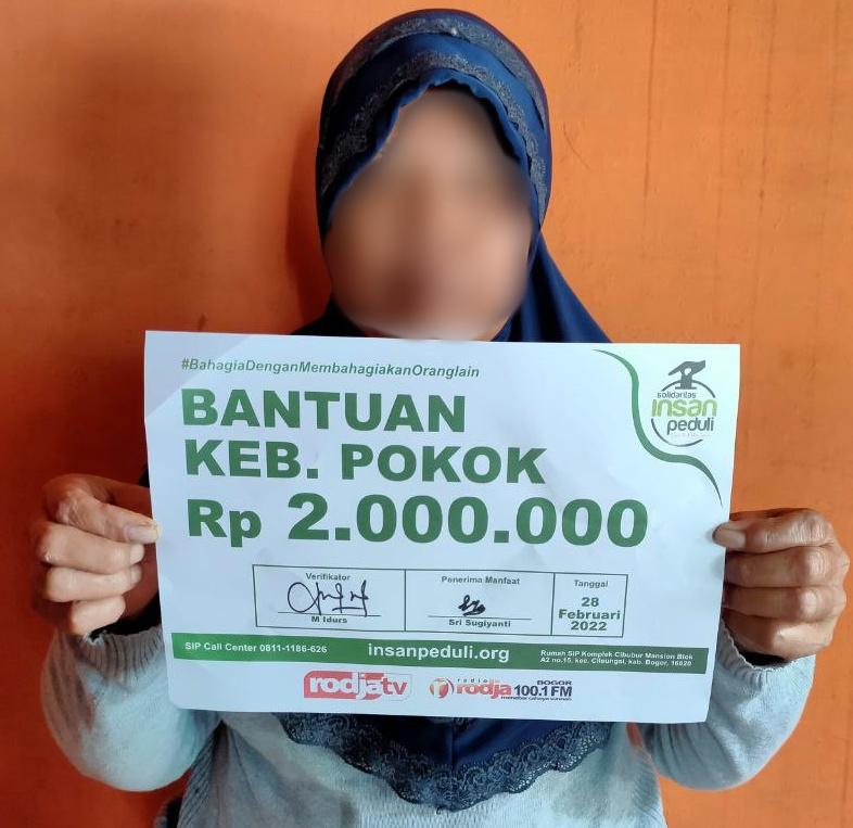 Alhamdulillah sudah di salurkan bantuan dari Muhsinin SIP yang ke 4343 (Februari 2022) LEMBAR VERIFIKASI: 1. Nama Lengkap: Sri Sugiyanti 2. Tempat, Tanggal Lahir: Sukoharjo, 21-12-1960 3. Usia: 62 Tahun 4. Jenis Kelamin: Perempuan 5. Status Pernikahan: Cerai Mati 6. Pekerjaan: Mengurus rumah tangga (terkadang disuruh masak, bersih-bersih rumah orang) 7. Jumlah Anak: 2 Orang […]