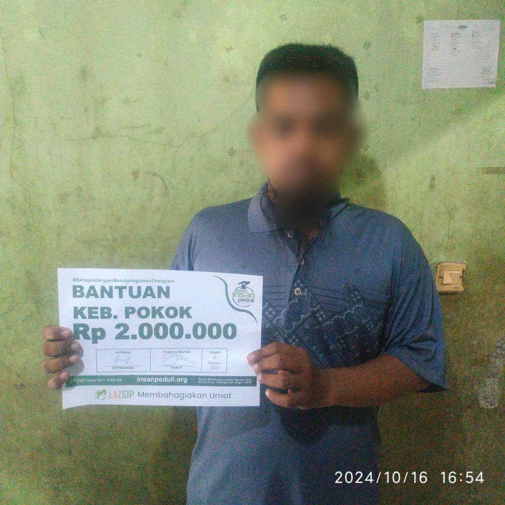 Alhamdulillah sudah di salurkan bantuan dari Muhsinin SIP yang ke 5948 (Agustus 2024) LEMBAR VERIFIKASI: 1. Nama Lengkap: Agung T.W. 2. Tempat, Tanggal Lahir: Jakarta, 06 September 1986 3. Usia: 38 tahun 4. Jenis Kelamin: Laki laki 5. Status Pernikahan: Menikah 6. Pekerjaan: Tidak ada pekerjaan karena keterbatasan yang disebabkan sakit. 7. Jumlah Anak: 2 […]